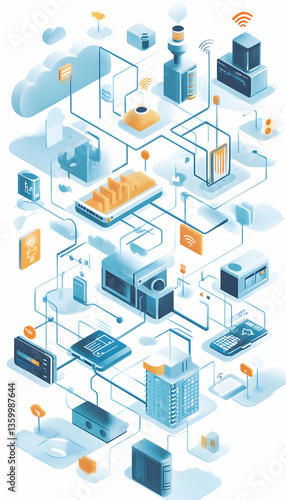 © charli, Obraz premium Cloud technology concept with devices connected to digital storage, symbolizing IoT and smart home communication -
