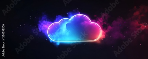 Fototapeta premium Cloud technology logo design, graphic, flat illustration, simple lines, black background, colorful, abstract art style, cloud icon with glow effect, cyberpunk Generative AI