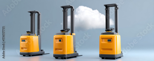 Fototapeta premium Cloud technology supports warehouse management software improving forklift operation efficiency modern logistics environments