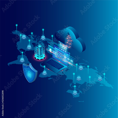 © imma, Obraz premium Cloud Technology Website Illustration Vector Design