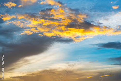 Obraz premium Cloud with blue sky after sunset or sunrise. Nature background. Travel...