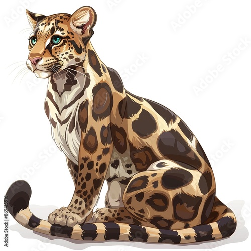 Fototapeta premium Clouded Leopard Bohemian fashion cartoon isolated whitebackground