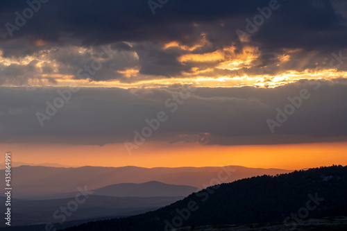 © scetin, Fototapeta premium clouds and mountains in the sky at sunset