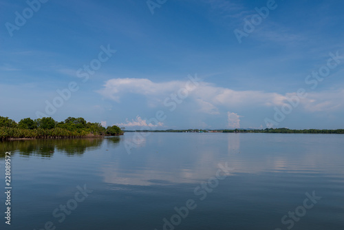 Fototapeta premium clouds blue sky above ocean and sea waves