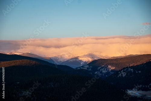 Fototapeta premium clouds coming in low over the Rocky Mountains