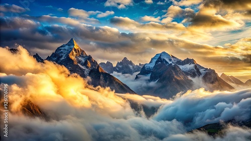 Fototapeta premium Clouds drifting over the majestic mountains, clouds, sky, mountains, nature,...