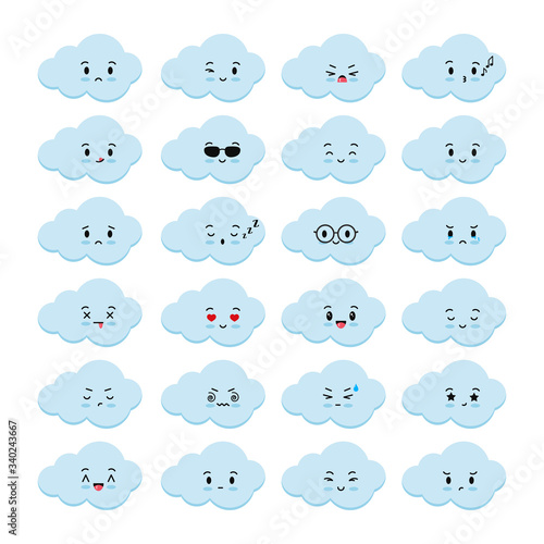 Obraz premium Clouds emoji icons vector set isolated on white background.