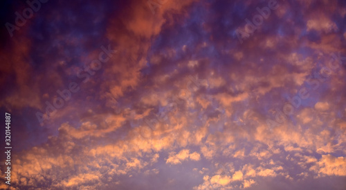 © Lastovetskiy, Obraz premium Clouds illuminated by the evening setting sun. Clouds at sunset day