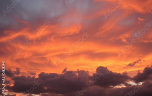 Naklejka premium Clouds in shades of fiery orange and smoky gray