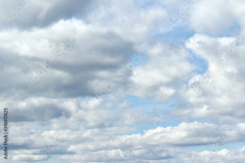 © Stanislav, Naklejka premium Clouds in the blue sky at sunset or dawn backlit by the sun. Place for text and design.