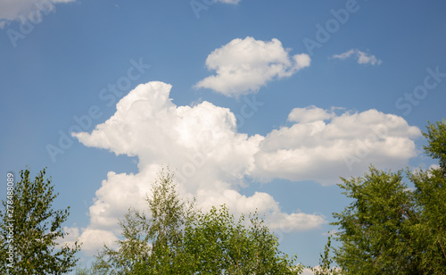 Obraz premium Clouds in the bright summer sky with trees