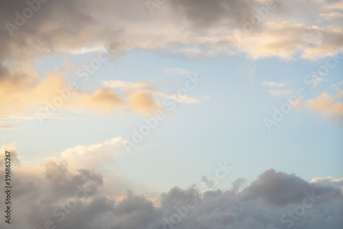 Obraz premium Clouds in the sky as a frame, sunset texture background.