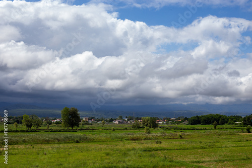 Obraz premium clouds over the field in northern iran shomal summer mazandaran