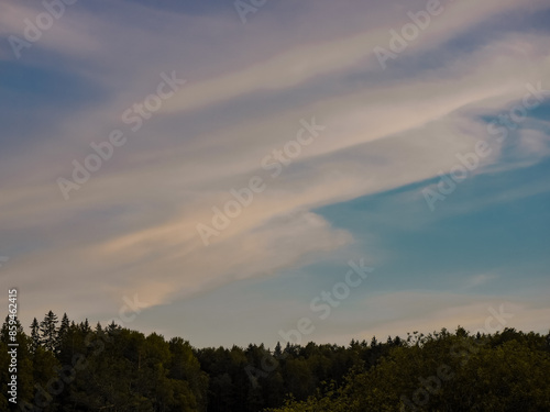 © niklas storm, Fototapeta premium clouds over the forest during evening