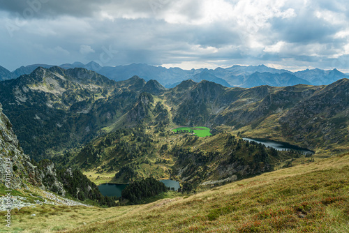 © zkcristian, Fototapeta premium Clouds over the mountains with beautiful lakes in the valley.