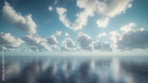 © kacadesain, Obraz premium Clouds Reflecting on Calm Ocean Surface - 3D Illustration