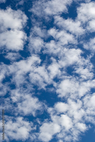 Fototapeta premium Clouds shaped like white fluffballs in a blue sky