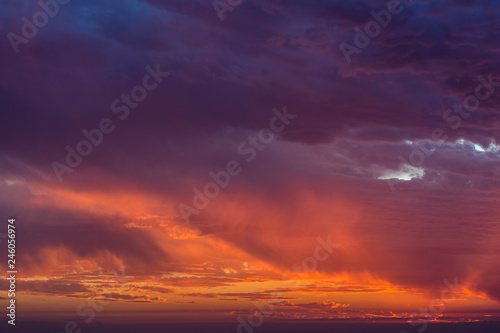 © abriendomundo, Fototapeta premium Clouds with the last sunrays impacting over it creating an amazing palette