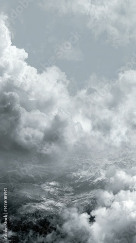 © KDG, Obraz premium Cloudscape Mountains: A Serene Monochromatic Landscape