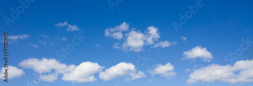 © Gray wall studio, Fototapeta premium Cloudscape over horizon. White heap clouds in the blue sky.