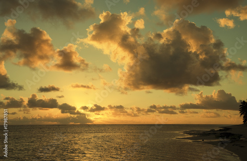© amelie, Obraz premium Cloudscape over Ocean and Island at Sunset