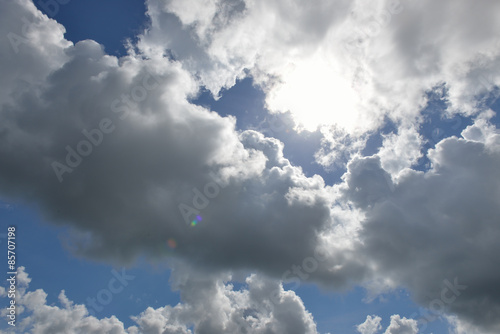 © teen00000, Fototapeta premium Cloudscape with the sun rays radiating from behind the rainy clo