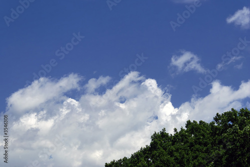 © Stephen Orsillo, Obraz premium Cloudscape with trees against a rich blue sky