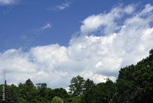 © Stephen Orsillo, Obraz premium Cloudscape with trees against a rich blue sky