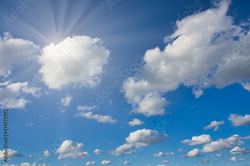 © Claudia Nass, Obraz premium cloudy blue sky background with sun rays