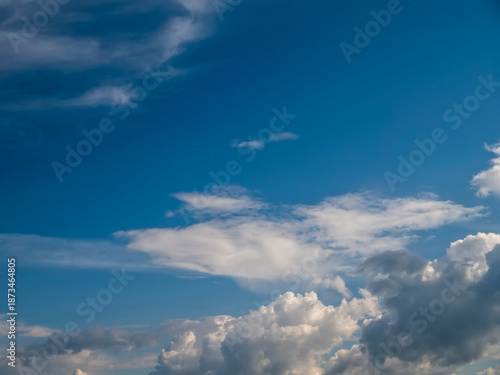 Fototapeta premium Cloudy blue sky. Nature background for design and special effects. Random...
