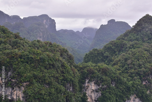 © Sawarin, Naklejka premium cloudy calcareous mountains, Green mountains and clouds, mist clouds after rain