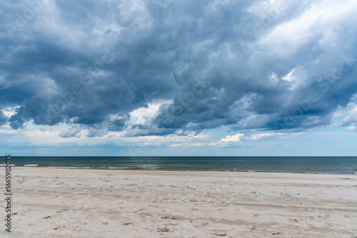 Fototapeta premium Cloudy, dramatic sky over a Polish beach near Sopot.