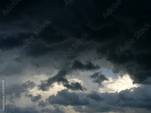 Fototapeta premium Cloudy gray sky with a small gap and a white cloud.