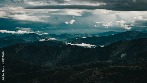 Obraz premium Cloudy mountain scenery with blue tones