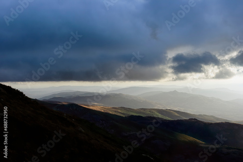 © Zacarias da Mata, Fototapeta premium Cloudy mountains at sunset