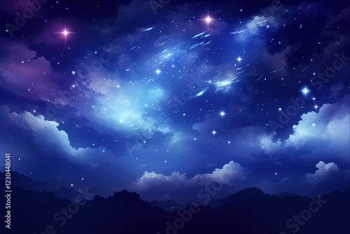 Naklejka premium Cloudy Night Sky with Sparkling Stars and Galaxy Background - Astronomy and...