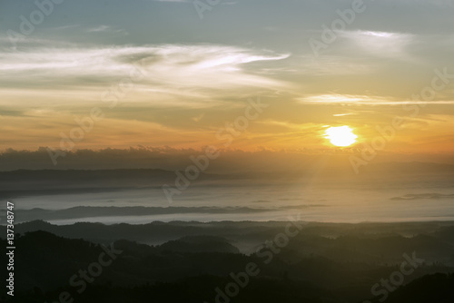 © sathit, Fototapeta premium Cloudy skies and stunning hilltop in winter.