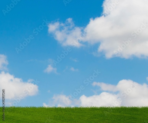 Fototapeta premium Cloudy sky and green grass in nature concept