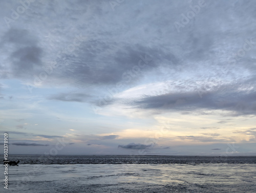 Obraz premium Cloudy sky and riverside view, The sky is cloudy and the ocean is calm