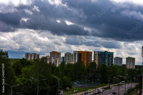 © Максим Сатановский, Fototapeta premium Cloudy sky in the city