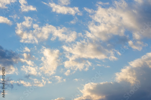 © Pellinni, Fototapeta premium cloudy sky in yellow light. natural background at sunrise. inspiring scene