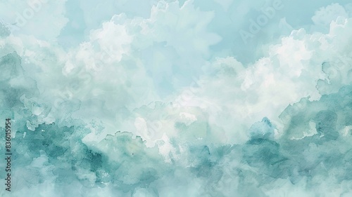 Fototapeta premium Cloudy Sky Watercolor Wallpaper with Blue and Green Hues