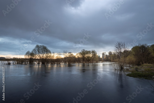 © Sergei, Fototapeta premium Cloudy sky with a lake in the foreground