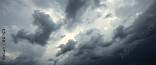 © KWY, Obraz premium cloudy sky with a plane flying in the distance