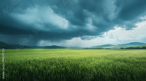 © Akharadat, Fototapeta premium Cloudy storm in the sea before rain. Tornadoes above the sea. Monsoon season. Storm in the sea.Wonder of natural disaster.