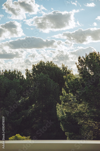 © Ben, Obraz premium cloudy sunny sky with trees in bottom half