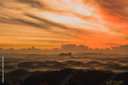 © Hendri, Fototapeta premium cloudy sunrise in the mountains