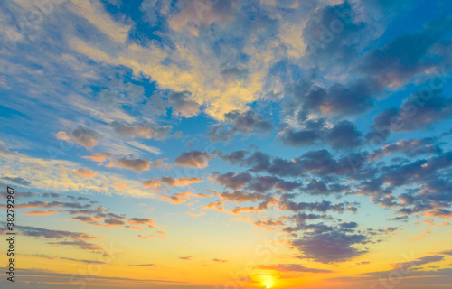 © andreusK, Fototapeta premium cloudy sunset landscape with sun