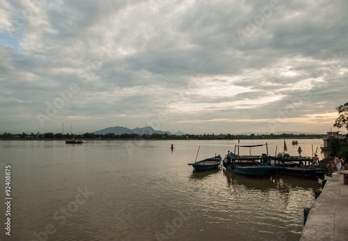 © avtk, Fototapeta premium Cloudy sunset on the Thu Bon river. Hoi An, Vietnam.
