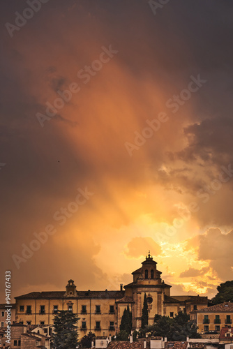 Obraz premium cloudy sunset over church